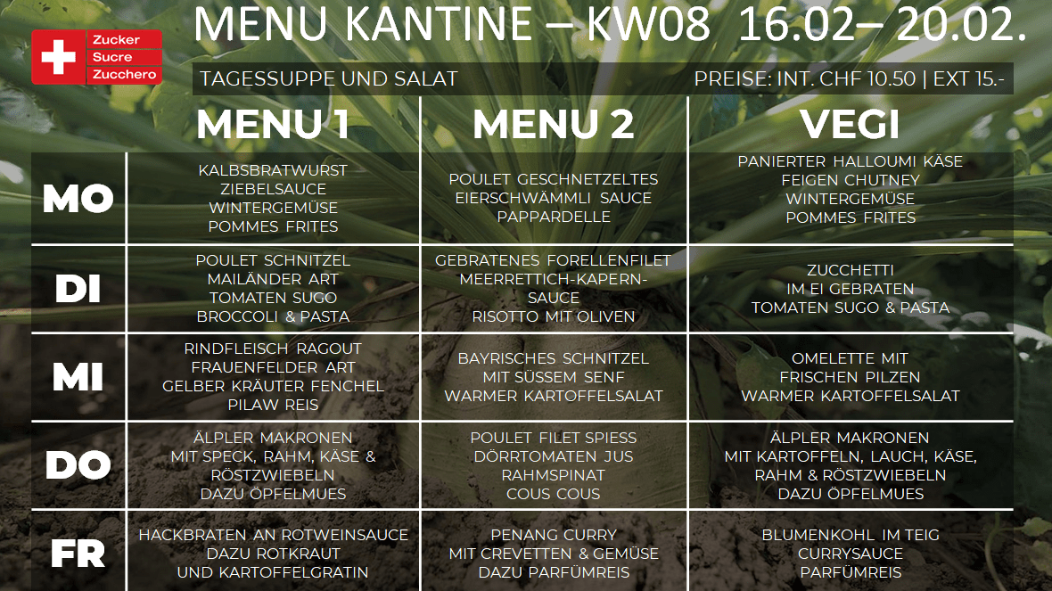 Menüplan Kantine Zuckerfabrik KW08