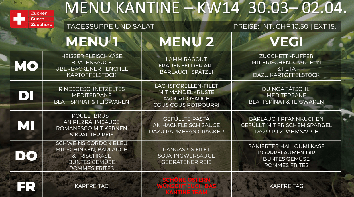 Menüplan Kantine Zuckerfabrik KW14