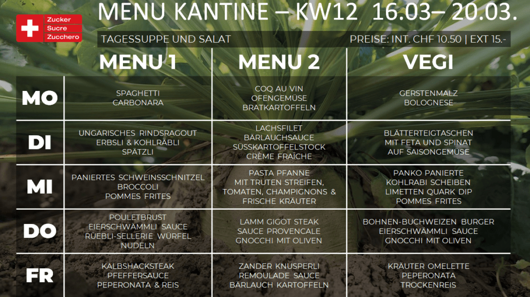 Menüplan Kantine Zuckerfabrik KW03